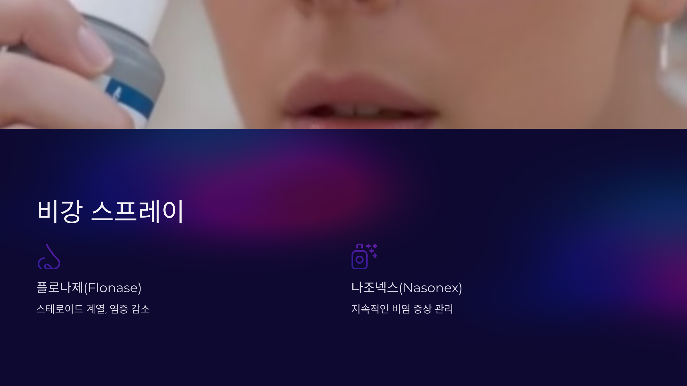 - 스테로이드 계열의 비강 스프레이로 염증을 줄이고 알러지 증상을 개선합니다.