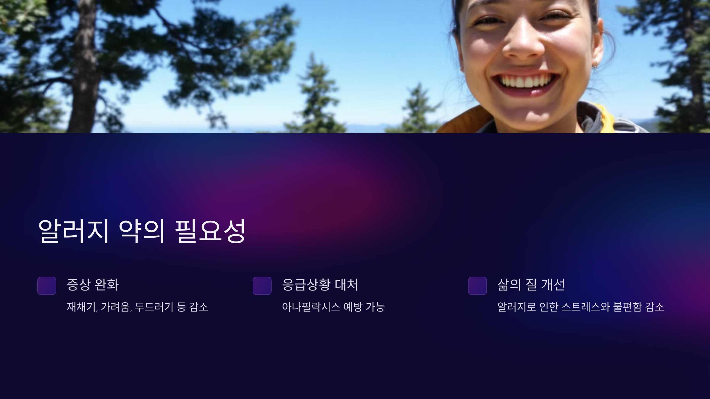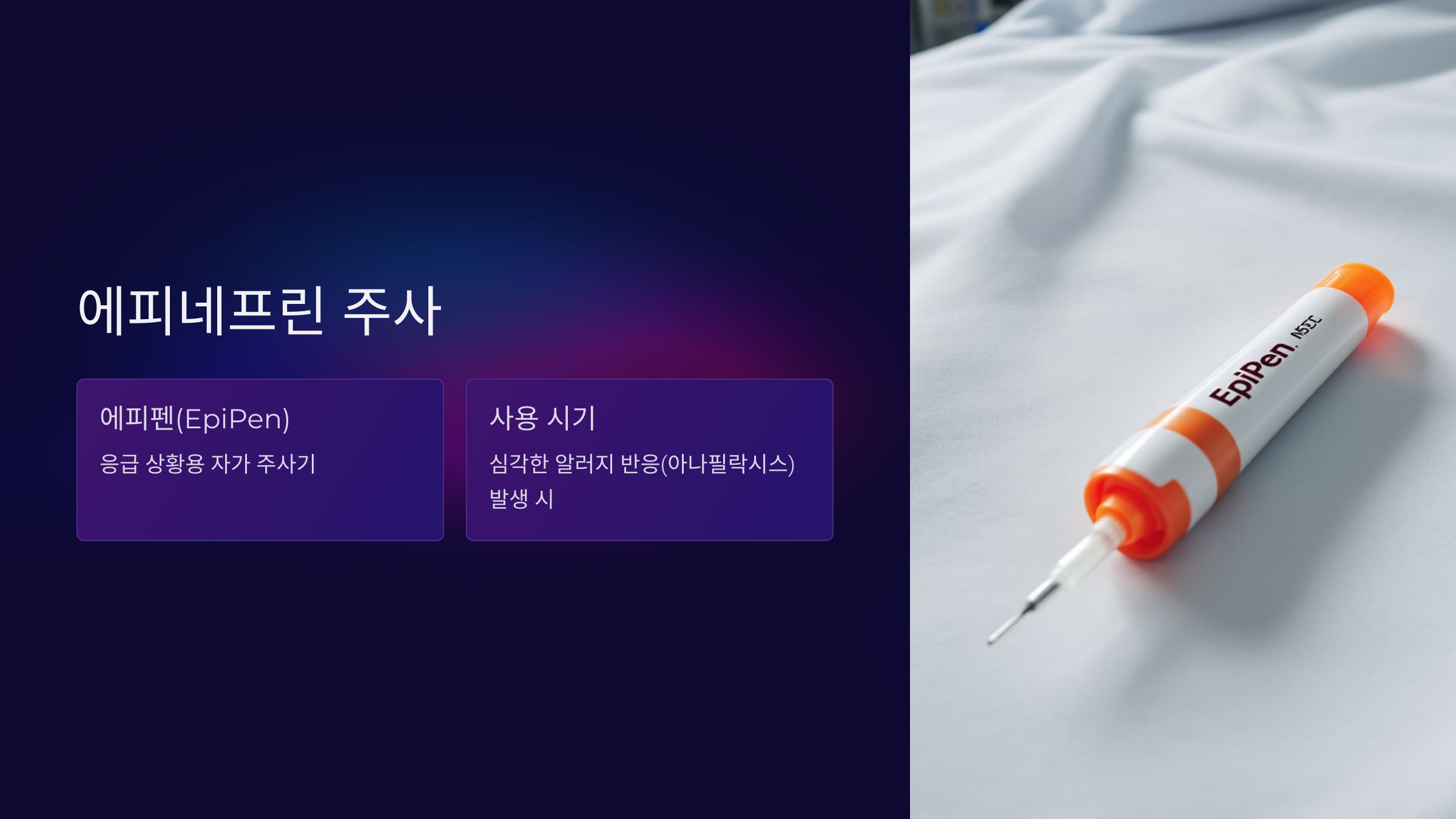 - 응급상황 대처: 심각한 알러지 반응(아나필락시스)을 예방할 수 있습니다.
