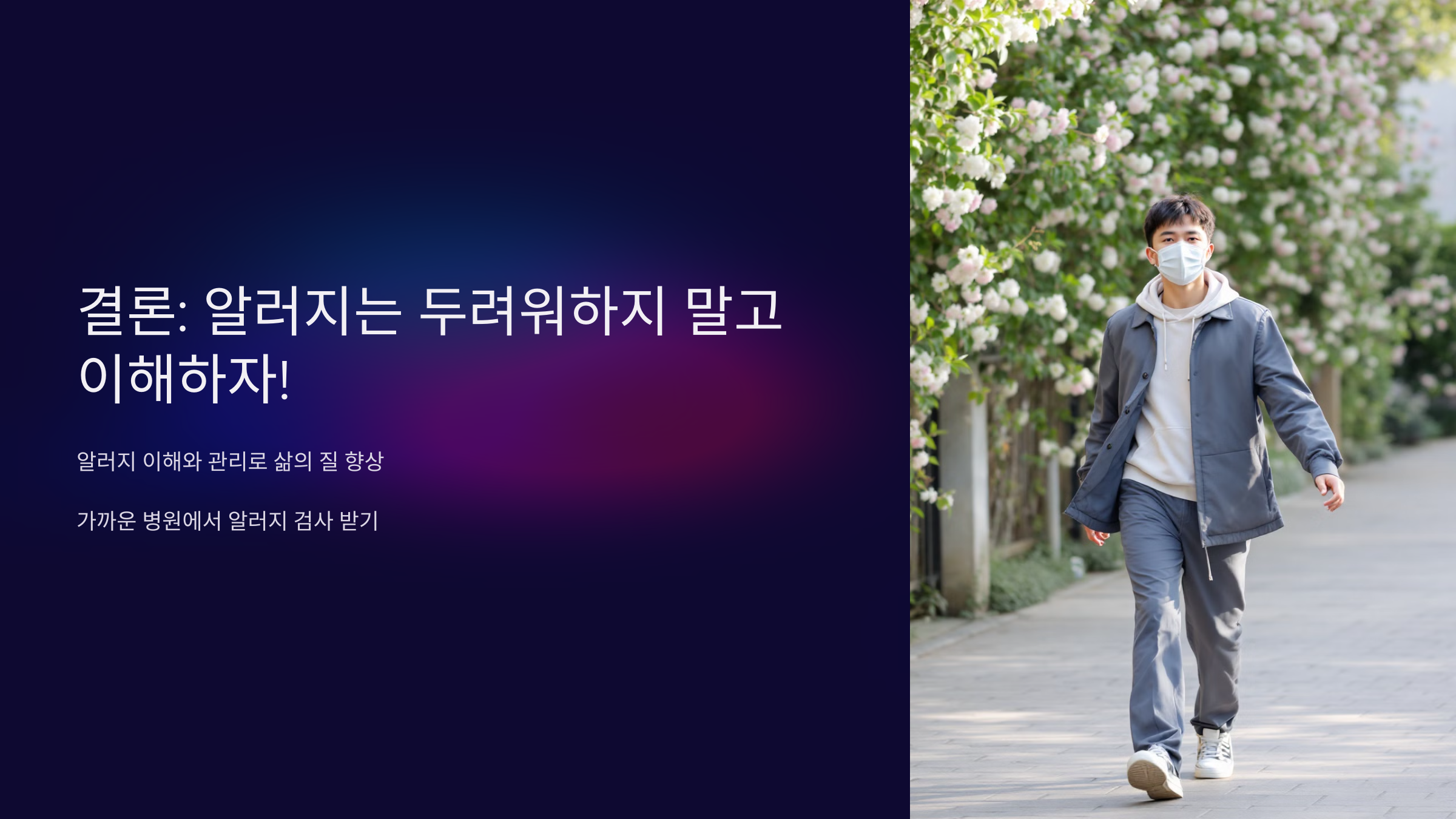지금 바로 가까운 병원을 방문하여 알러지 검사를 받아보세요. 당신의 건강한 내일을 응원합니다! 🌈