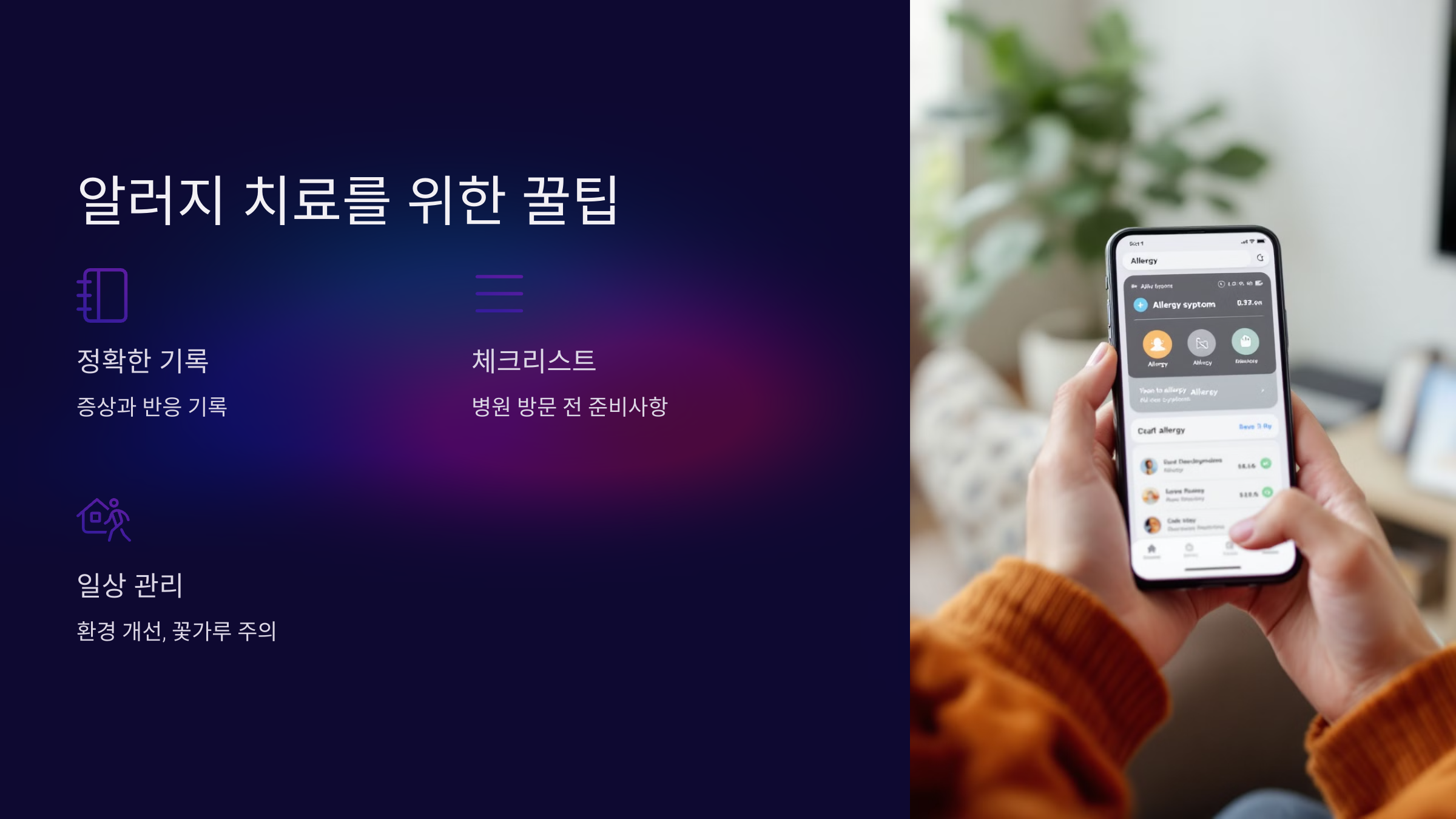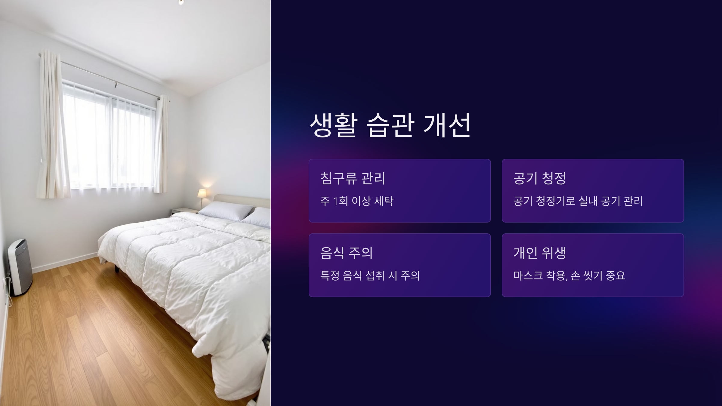 💡 꿀팁: 마스크 착용과 손 씻기는 알러지 예방에 큰 도움을 줍니다.