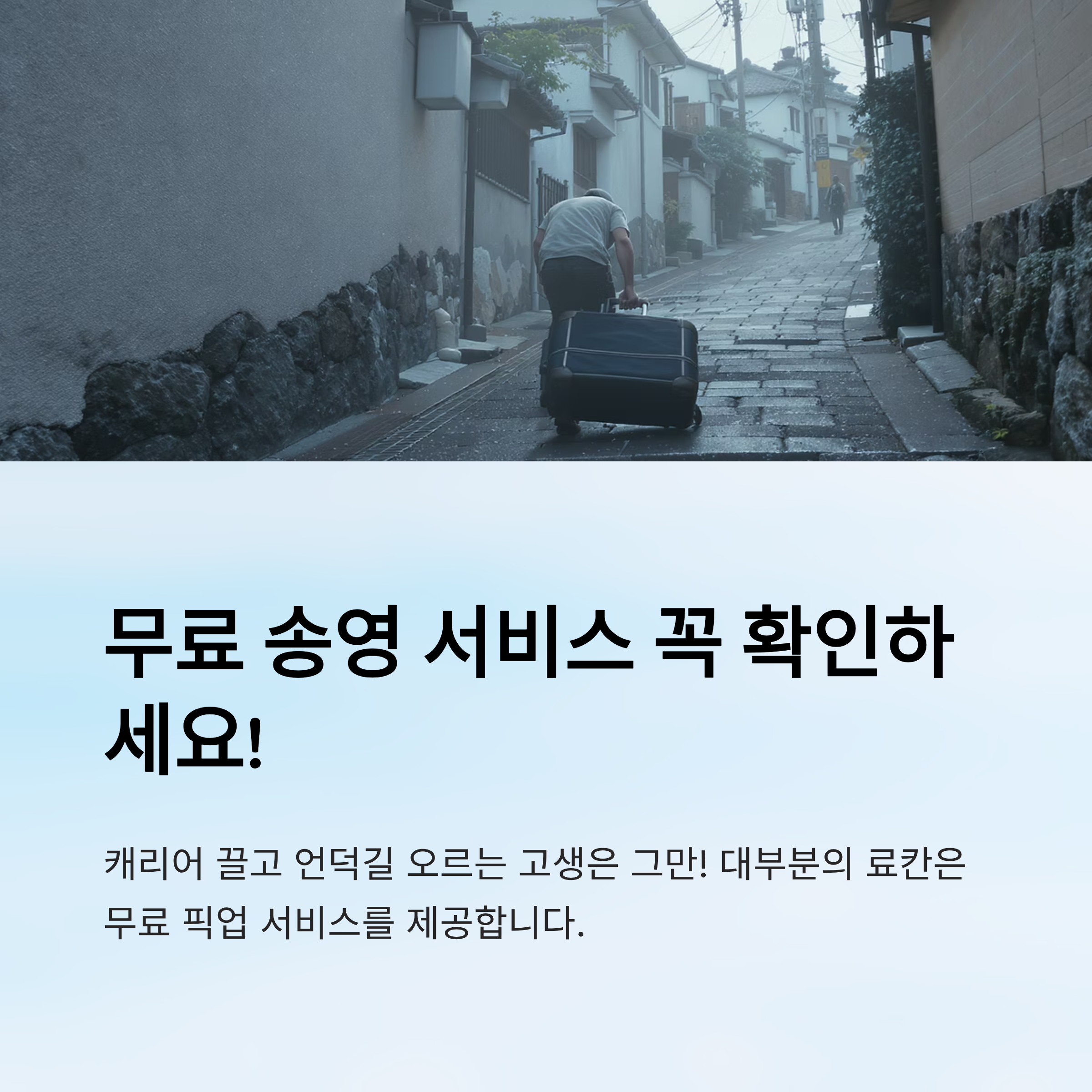 대부분의 료칸이 역에서 무료 송영 서비스를 제공하는데, 예약 페이지나 공식 홈페이지에서 반드시 확인해야 해요.