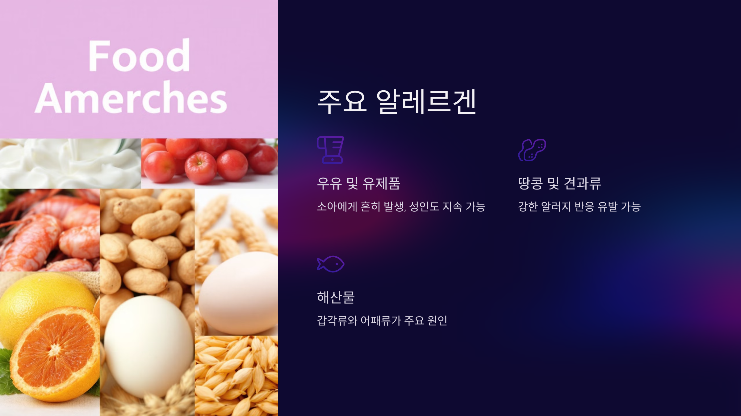 음식 알러지를 유발하는 주요 알레르겐은 다음과 같습니다.