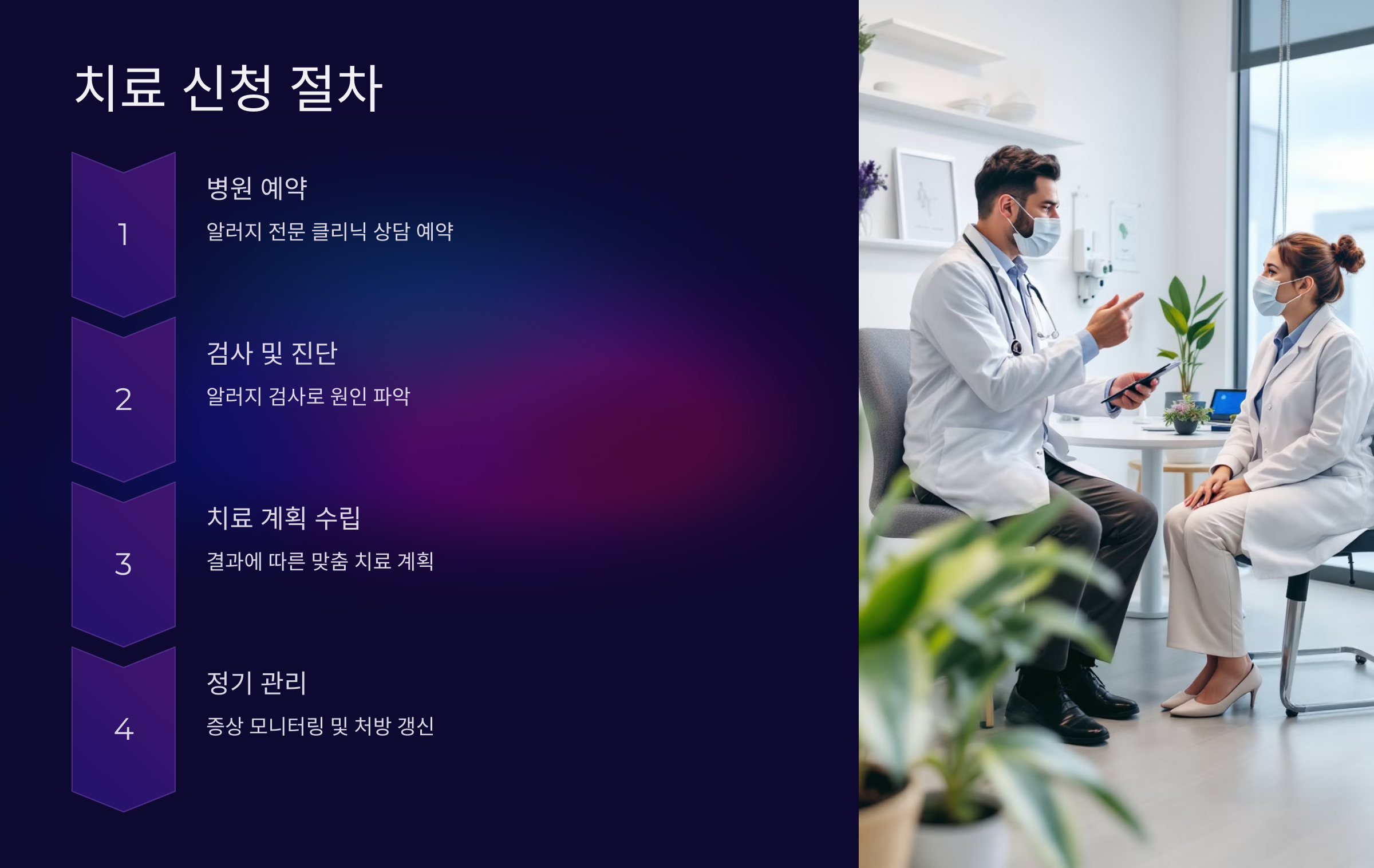 - 알러지 전문 클리닉 또는 내과에서 상담 예약을 진행하세요.