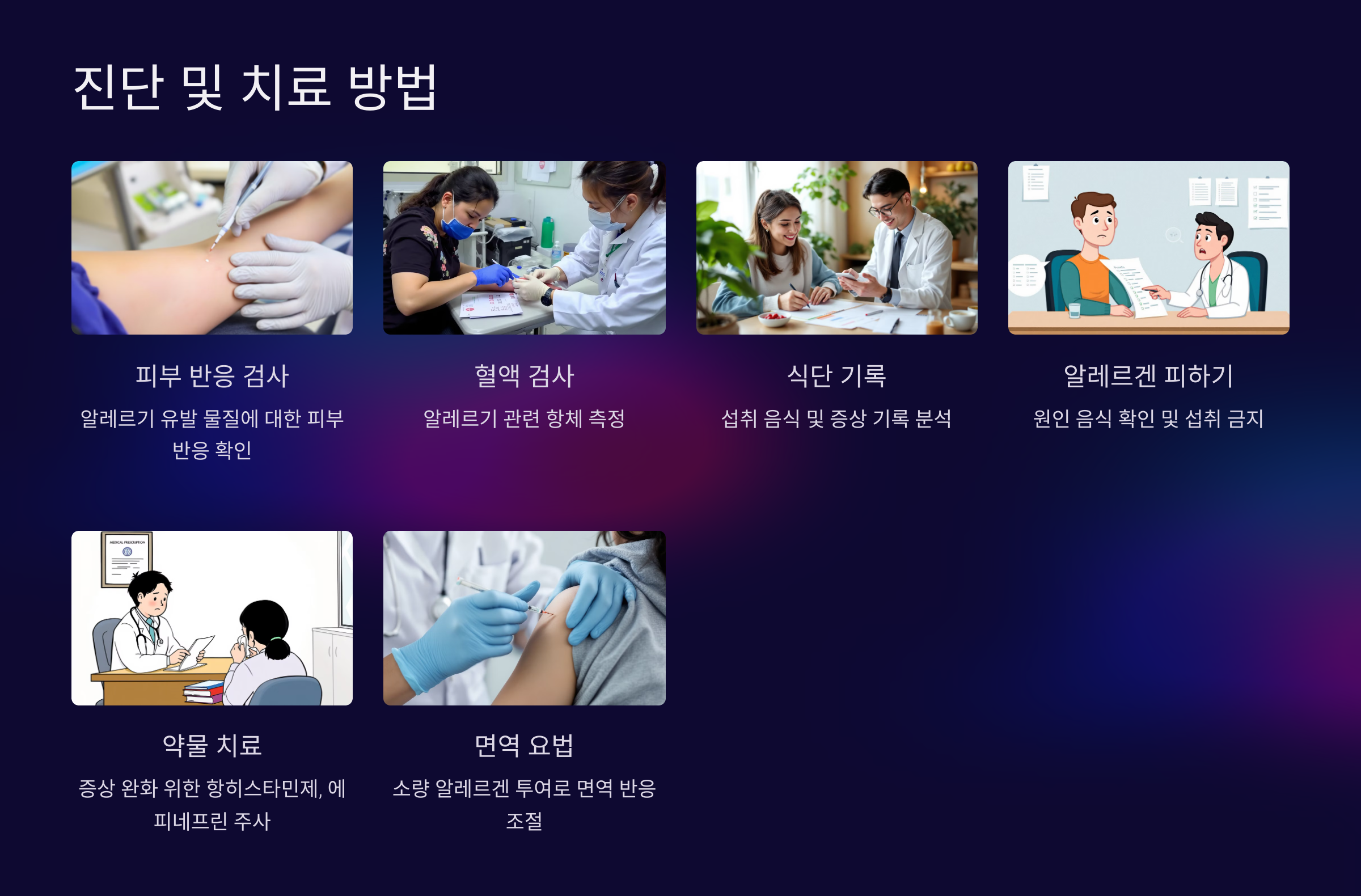 - 식단 조절, 약물 처방, 면역 요법 중 적합한 방법을 선택합니다.