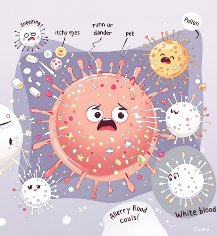 - 특정 물질(예: 꽃가루, 음식, 먼지 등)이 몸에 들어오면 면역 체계가 이를 침입자로 인식합니다.