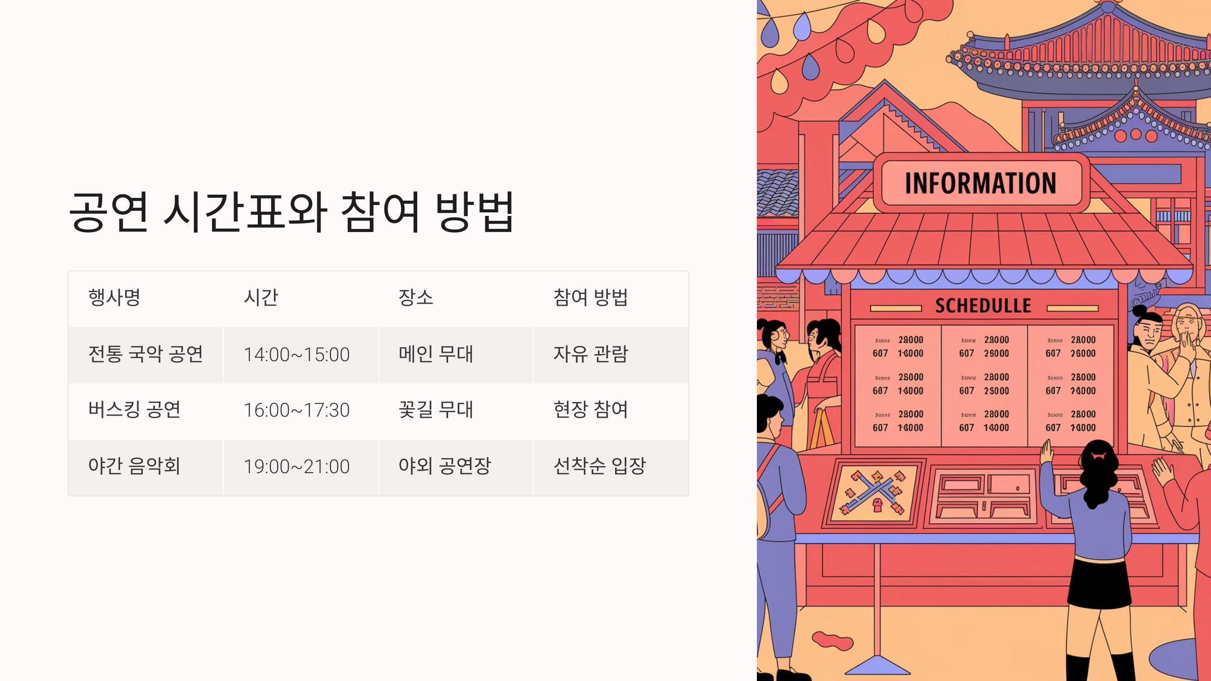 ⏰ 공연 시간표와 참여 방법