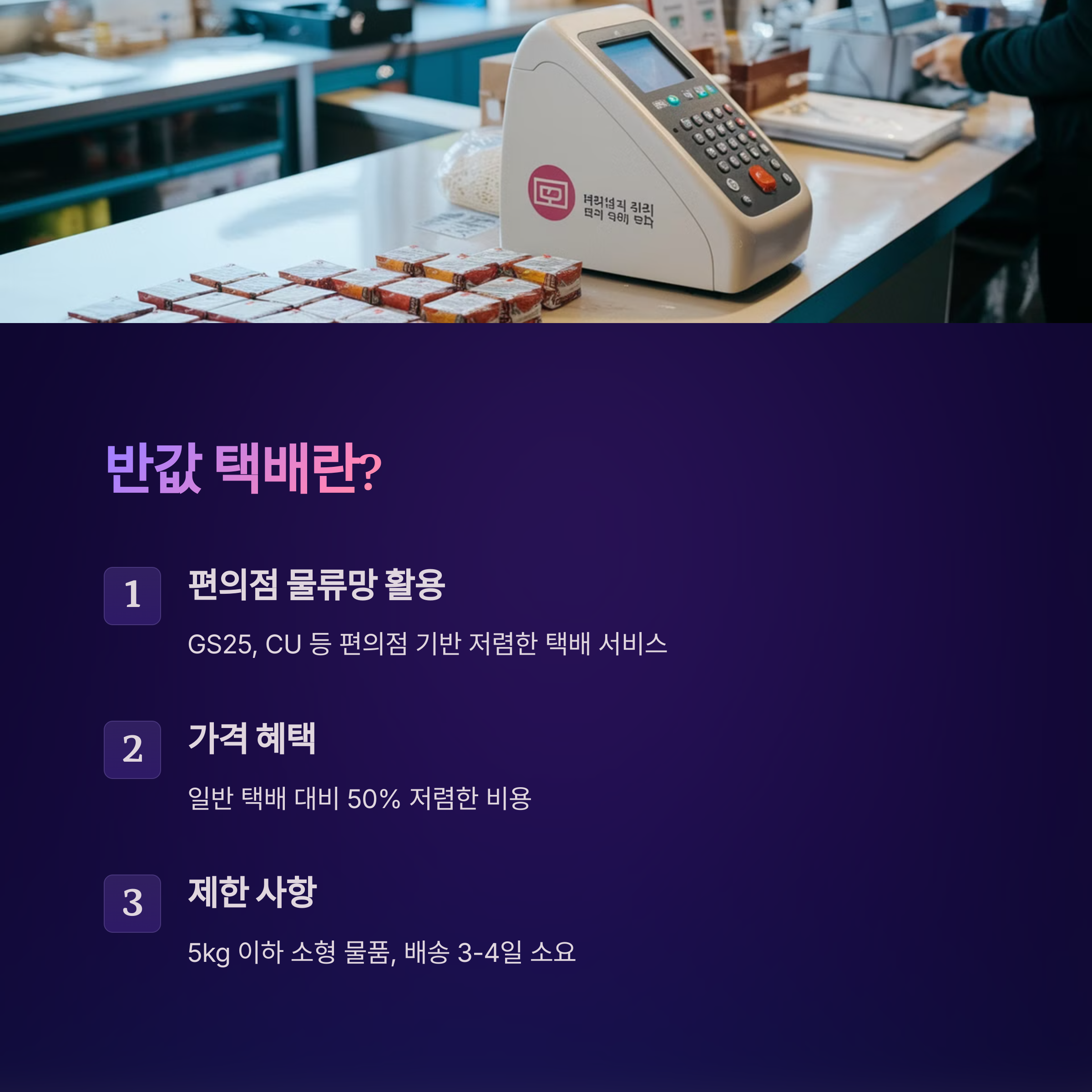 반값 택배는 일반 택배보다 저렴한 비용으로 이용할 수 있는 서비스예요. GS25, CU 같은 편의점에서 쉽게 접수할 수 있고, 직접 방문할 필요 없이 택배함을 활용해 보낼 수 있어요. 📮