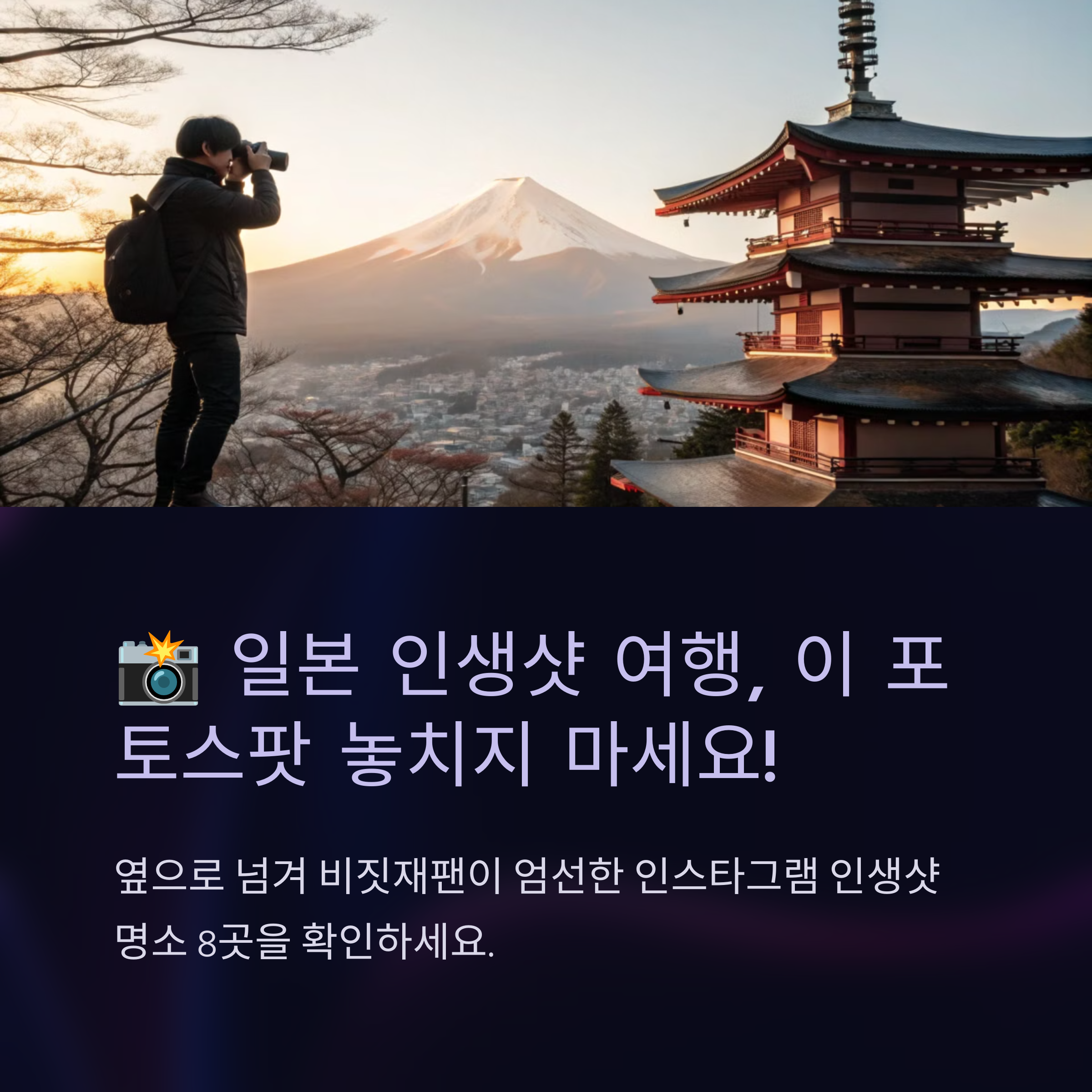 오늘은 일본에서 인생샷을 남기고 싶은 분들을 위해, 최고의 포토 스팟과 촬영 팁을 소개해 볼게요. 어디에서 어떤 각도로 찍으면 좋은지, 어떤 시간대가 가장 아름다운지까지 모두 알려드릴 테니, 일본 여행을 계획하고 있다면 꼭 참고해 보세요! ✨