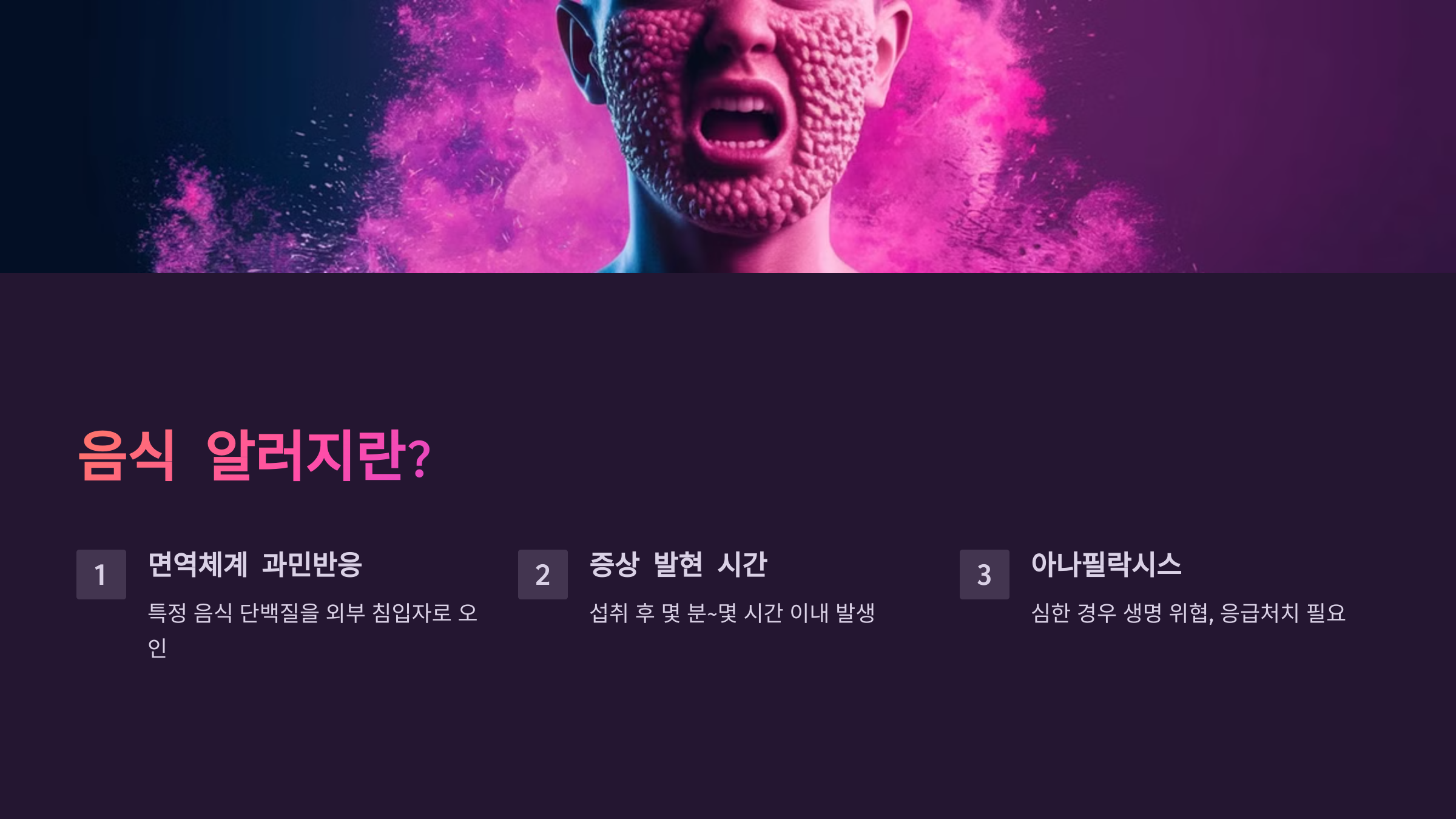 음식을 먹은 후 갑자기 몸이 간지럽거나, 배가 아프거나, 심지어 호흡곤란까지 경험한 적 있으신가요? 이러한 증상은 '음식 알러지' 때문일 수 있어요. 음식 알러지는 특정 음식에 포함된 단백질에 면역 체계가 과민 반응을 일으켜 발생해요.
