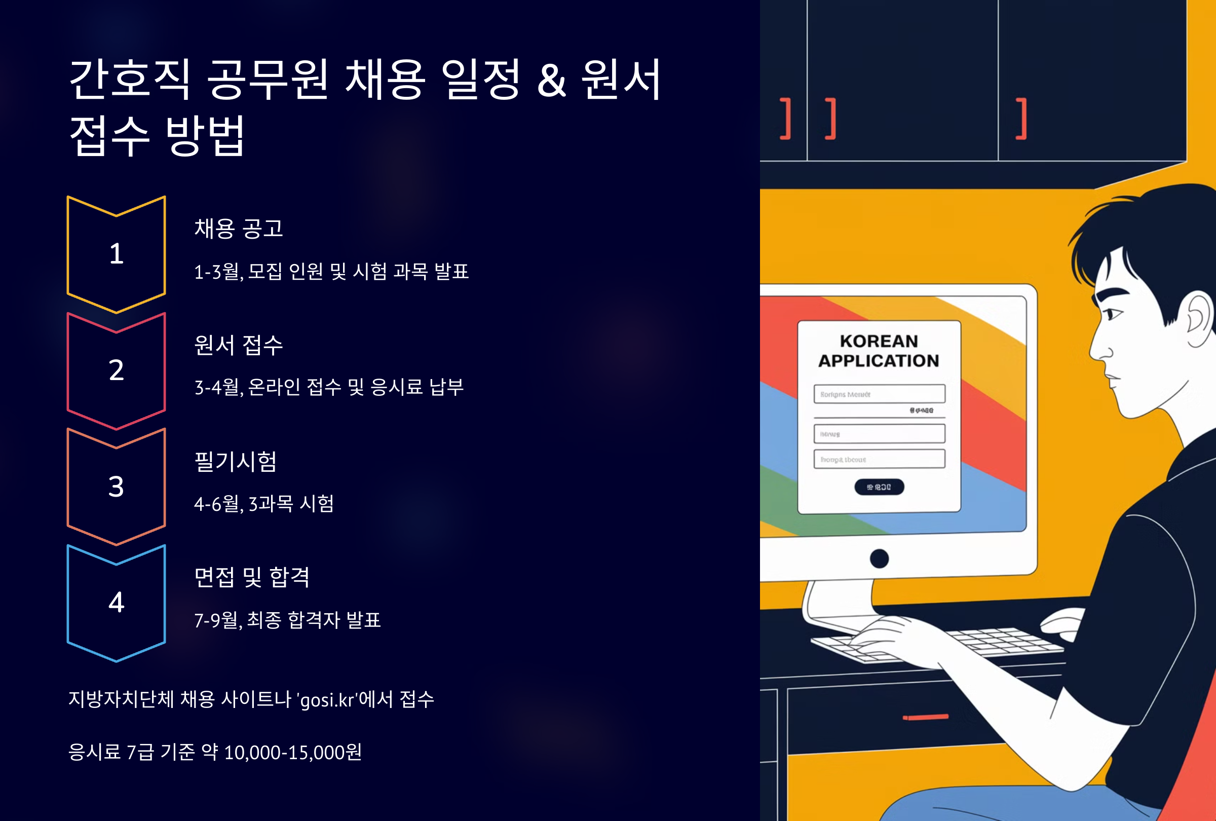 간호직 공무원 채용은 보통 상반기와 하반기로 나누어 진행돼요. 보건복지부 또는 각 지방자치단체의 공고를 통해 확인할 수 있어요. 시험 일정은 보통 1월~3월에 공고가 나오고, 필기시험은 4~6월, 면접은 7~8월에 이루어지는 경우가 많아요. 📅