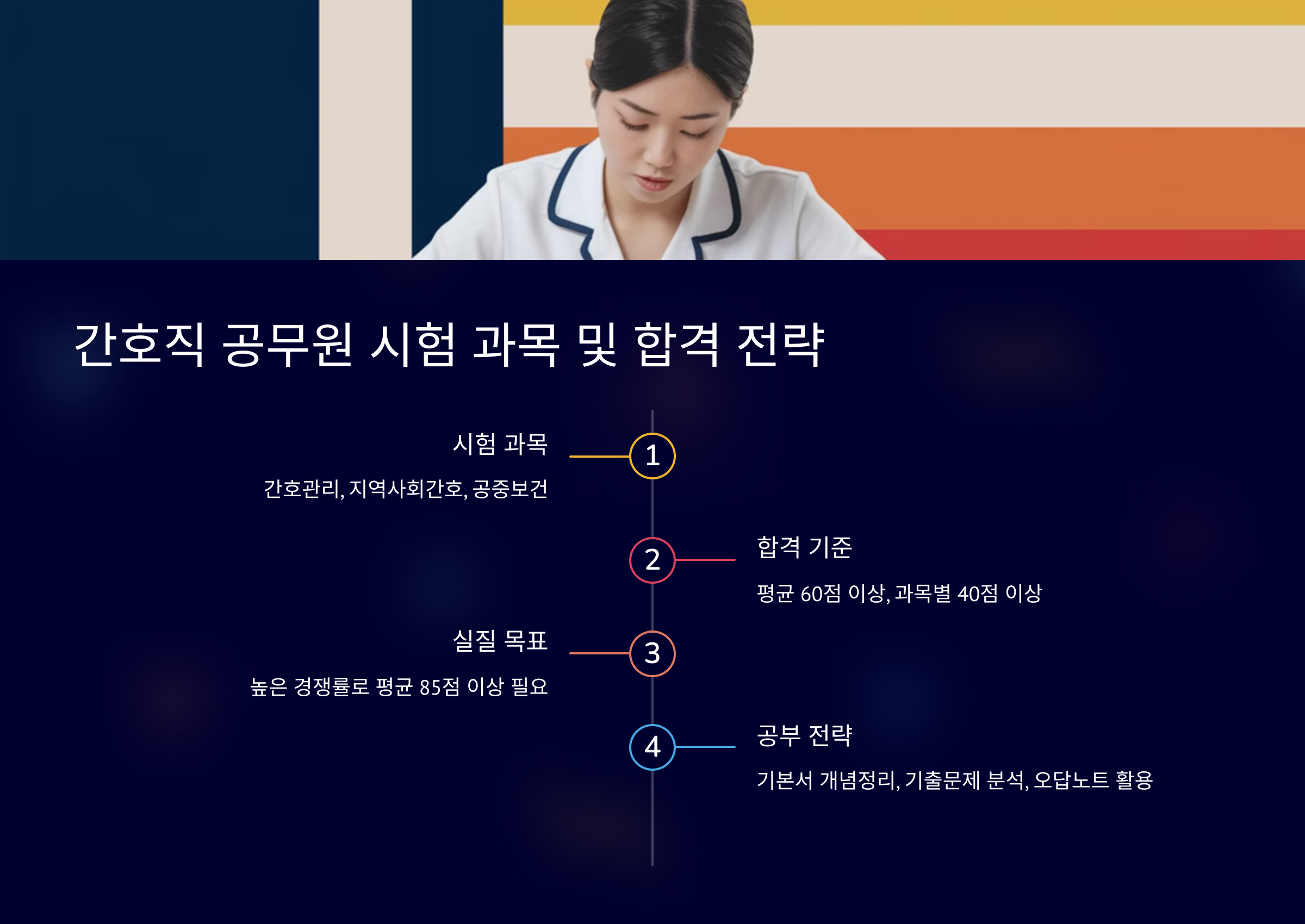이처럼 간호직 공무원 시험은 단순 암기보다는 실무와 연결 지어 학습하는 것이 효과적이에요. 공부 시간 관리를 잘하고, 체력 관리도 소홀히 하지 않는 것이 중요해요. 😊